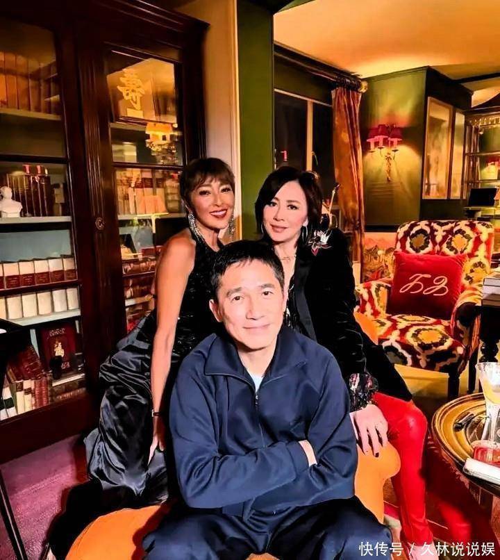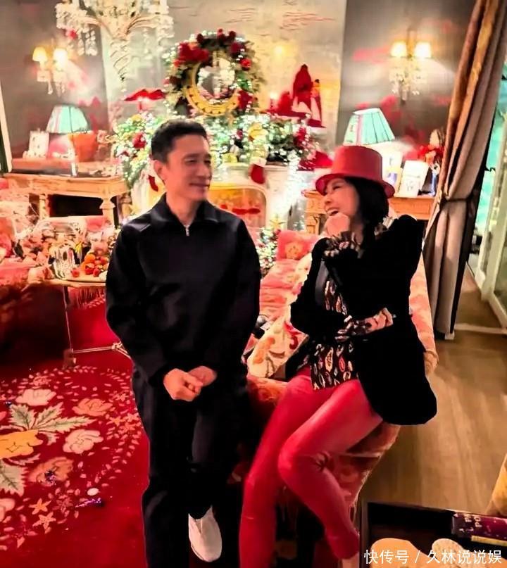 但不知道你注意没,在这满屋子奢华热闹里边,梁朝伟反倒像个“安静的特殊存在”。他就穿了件简简单单的毛衣,靠在旁边笑,眼角纹都笑出来了。这种反差挺有意思的,一个在社交场上光芒四射,一个在角落自在舒服,偏偏这种“各玩各的”的松弛,反倒让人觉得他俩相处得挺自在。